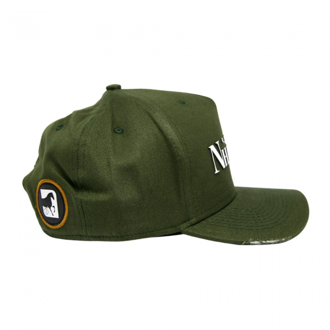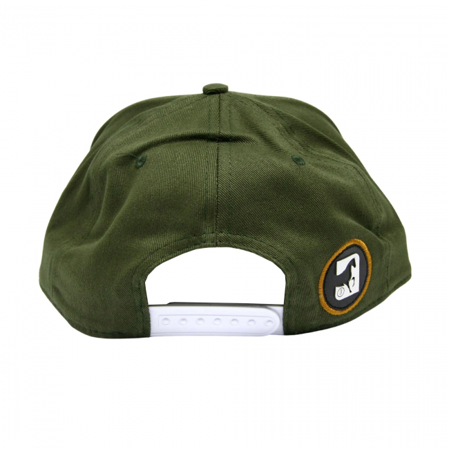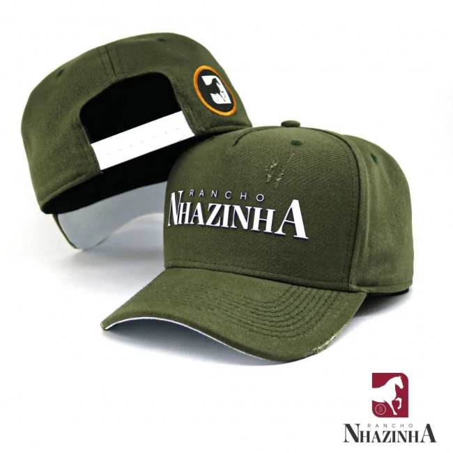 Boné modelo My Best Melody. Na cor Verde Oliva Escuro e com detalhes da logomarca do Rancho Nhazinha. Feixe traseiro estilo snapback (possui um ajuste do plástico, onde você consegue regular o diâmetro do boné através dos furinhos).