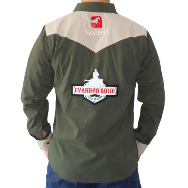 A camisa verde militar manga longa é clássica e perfeita para qualquer combinação. Confeccionada em tricoline e elastano o que deixa a peça super confortável, possui detalhes na pala e punho em kaki, fechamento com botões e 2 bordados nas costas e 2 bordados no peito.